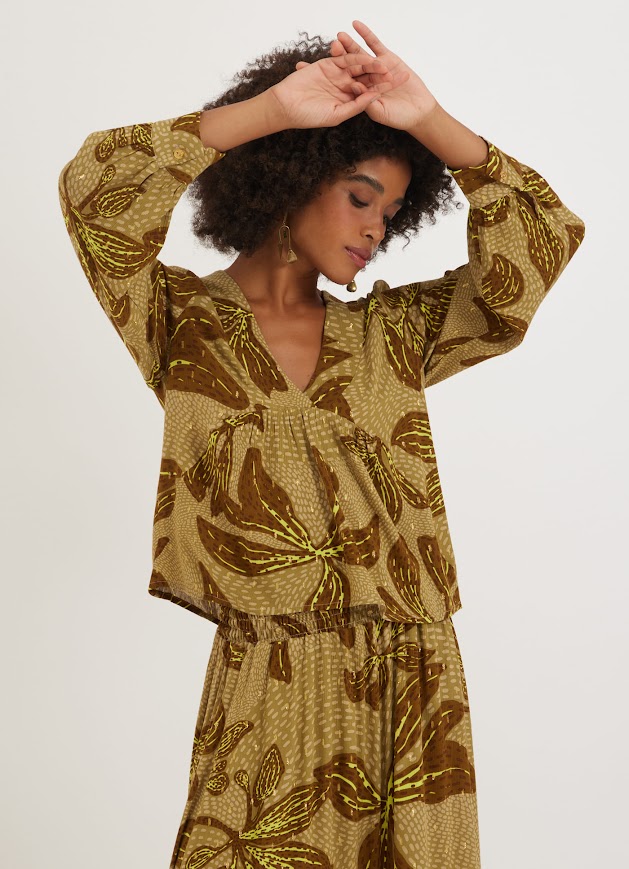 A bata da marca Cantão é uma peça cheia de personalidade e estilo, perfeita para quem busca conforto e praticidade sem abrir mão do visual moderno. Com um elegante decote em V, ela oferece um toque de sofisticação. As mangas longas contam com botões que permitem ajustá-las, podendo ser dobradas e presas para um visual mais despojado, ideal para diferentes ocasiões. Estampada nas cores verde musgo, verde fluorescente e marrom, a peça traz um mix de tons vibrantes e sofisticados, criando um padrão único e cheio de energia. O design versátil e a qualidade do tecido fazem dessa bata uma opção perfeita para quem valoriza estilo e conforto. |