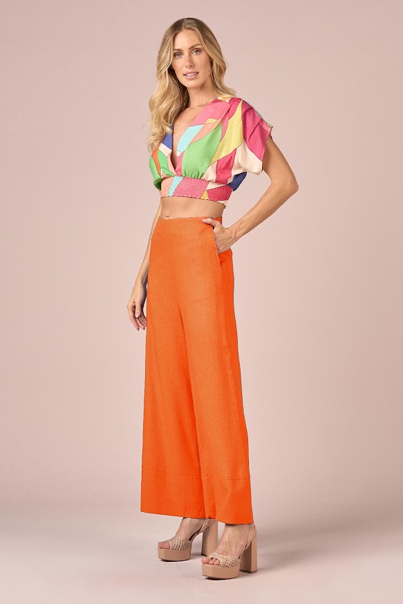 A calça pantalona da My Place em tecido de linho na cor papaia é a escolha ideal para quem busca conforto e estilo em uma única peça. Confeccionada em linho de alta qualidade, esta calça oferece um caimento leve e fluido, perfeito para climas quentes e dias descontraídos. O modelo pantalona proporciona um visual elegante e alongado, com pernas largas que garantem liberdade de movimento e um toque de sofisticação ao look. A cor papaia, um vibrante tom de laranja, adiciona um toque de energia e modernidade, destacando-se como um ponto de atração no seu guarda-roupa. Ideal para ocasiões variadas, desde eventos casuais até encontros mais sofisticados, a calça pantalona pode ser combinada com blusas, camisas ou tops, criando looks versáteis e cheios de estilo. O tecido de linho não só proporciona um visual elegante, mas também garante conforto e frescor ao longo do dia. |