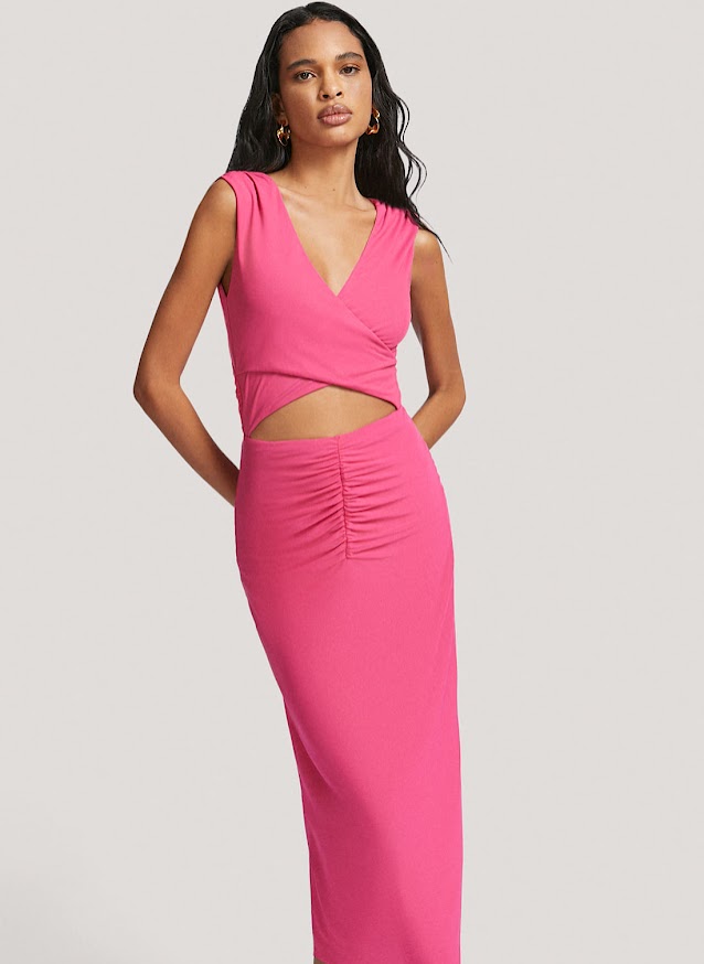 | A saia midi rosa pink da Morena Rosa com drapeado na frente é uma peça vibrante e elegante, ideal para eventos sofisticados e ocasiões especiais. |