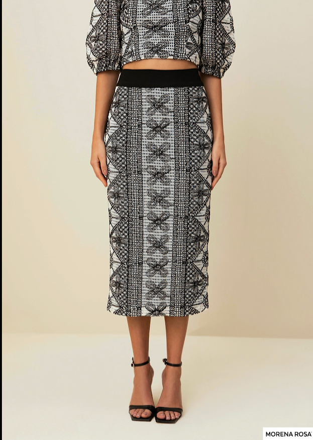 Saia Morena Rosa midi reta com renda