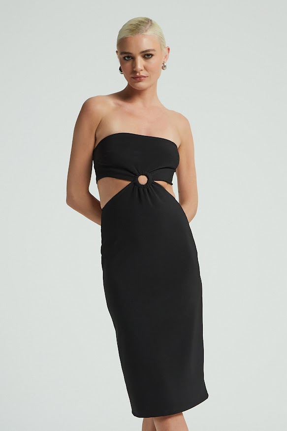 Este vestido tomara que caia da marca My Place é a escolha perfeita para quem busca elegante e ousadia. Na cor preta, ele exibe um visual sofisticado e moderno, com comprimento até o joelho, ideal para diversos benefícios. O destaque fica por conta do detalhe de argola na parte frontal, que traz um toque de estilo único e contemporâneo. Além disso, as aberturas nas laterais conferem um charme adicional, proporcionando um caimento impecável e favorecendo a silhueta. Uma peça versátil, que oferece conforto e sofisticação, perfeita para quem deseja arrasar com um look moderno e sofisticado